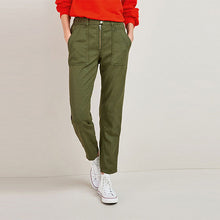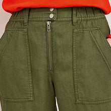These easy-to-wear trousers are made from a TENCEL™ blend for long-lasting softness and colour retention. Featuring a visible front zip fastening, front patch pockets, two back jetted pockets and elasticated waistband with belt loops.