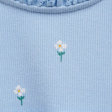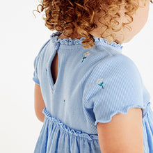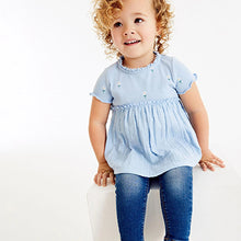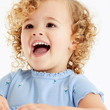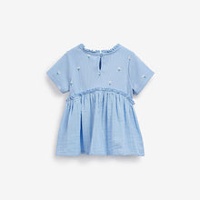 A pretty peplum top with rounded frill collar and raised waist. This soft essential has a ribbed jersey bodice with delicate floral print. Perfect for parties and playdates, this lightweight top has a frilled and floaty hem.