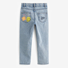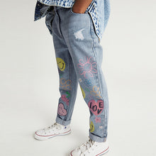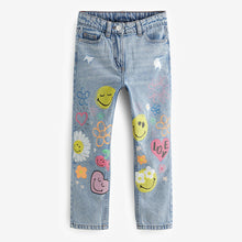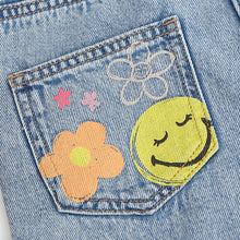 Your little fashionista will love these cotton denim jeans, with a relaxed mom fit and a mid-blue wash, decorated with official SmileyWorld graphics.
