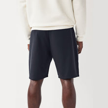 These versatile jersey navy shorts are perfect for summer, crafted from a soft jersey construction with an adjustable elasticated waistband for the perfect fit, alongside dual zippered side pockets and rear pockets.