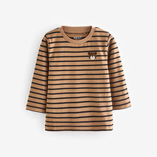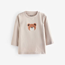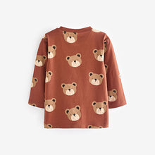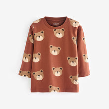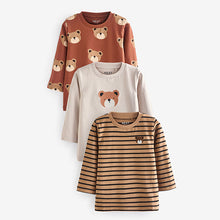 This 3-pack of long sleeve brown bear t-shirts are a must-have for colder weather. Made from pure cotton, these t-shirts are great for a layered outfit, or just as a base layer with a striped, plain and all-over print top featuring cute bear graphics, finished with a ribbed crewneck collar and sleeve cuffs.