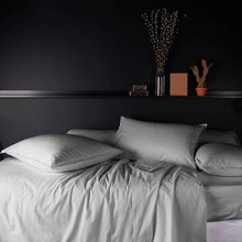 Une housse de couette unie en percale de coton avec un bel aspect mat.