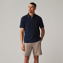 Versatile and stylish, this elevated navy blue polo shirt has a regular fit with a textured soft fabric, a zip-fastened neck and a classic collar, finished with ribbed trims and a woven hem label.