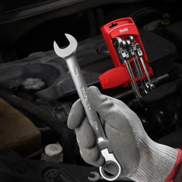 Flex-Head Double Box-End Ratcheting Wrench Set – 6 Pcs
