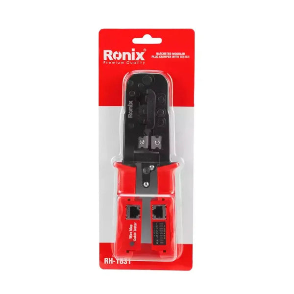 A ratcheted modular plug crimper is a tool that can be used to crimp Ethernet and telephone cables by punching through their insulation and placing it into RJ45 connectors. With the Ronix RH-1831 ratcheted modular plug crimper's embedded small tester, users can ensure the reliability and functionality of their STP and UTP cables, making it an excellent choice for professionals working with network installations or repairs.