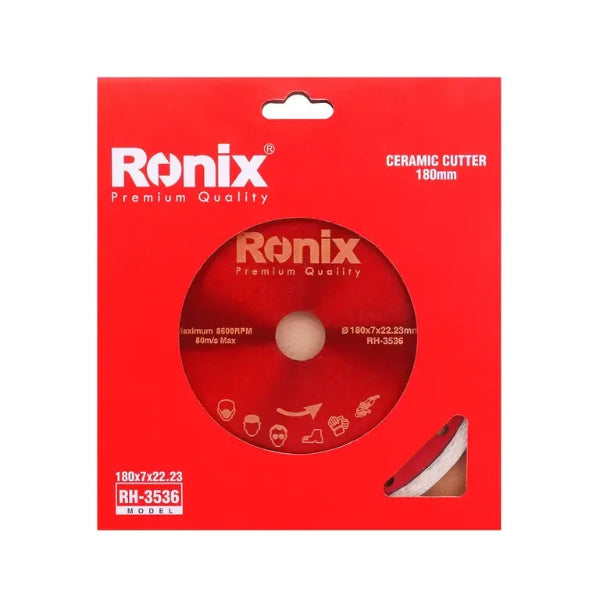Depending on the materials that you work with, different combinations of cutting discs may be required. The hardness and ductility of the materials you work with, affect the choice of cutting disc. Cutting ceramics or sintered carbides should be done using diamond abrasives like what you can find in Ronix ceramic cutting discs. Ronix RH-3536 ceramic cutting disc with the use of 145kgf.cm bending resistant steel and high-performance diamond is ideal for efficient cutting during high-pressure jobs. RH-3536 ceramic cutting disc is a 7mm disc with 180mm in wheel diameter.