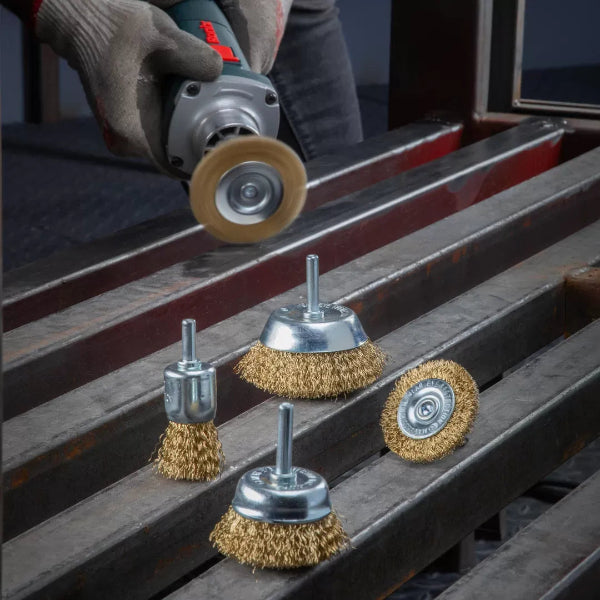 5-pieces set of wire brushes with 1.4inch hex shanks and compatible with any drill or impact driver.