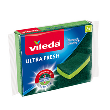 Ultra Fresh - the world’s only completely anti-bacterial sponge scourer! Thanks to the silver ions and zinc pyrithione contained in the scouring pad, this Vileda sponge scourer offers 99% protection against microbial pathogens (as demonstrated by independent testing) as well as long-lasting freshness. The foam layer is extra absorbent and pleasant to the touch. The Ultra Fresh Anti-Bacterial sponge scourer is made to be homemaker-approved, European standards of quality and durability. To maximise the life of the product, Vileda recommends you allow the sponge to dry out completely after each use. For hygienic reasons, we also recommend changing sponges periodically.