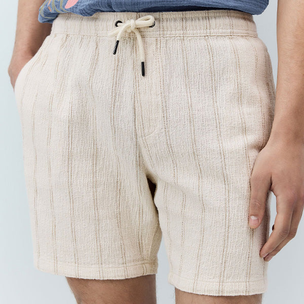 Step out in style and comfort this summer with our textured stripe cotton shorts. Crafted from 100% breathable cotton, these shorts offer exceptional softness and all-day comfort, perfect for warm weather. The unique textured stripe design adds a touch of visual interest, while the adjustable drawstring waist ensures a personalised fit. Ideal for casual outings, beach days, or relaxing at home, these shorts are a versatile addition to any summer wardrobe.