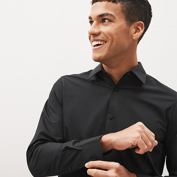 For a crisp look that lasts all day, you can't go wrong with our black easy-care shirt. Made from a smooth cotton blend, this shirt is incredibly soft to the touch, with a crease-resistant finish that's a dream to iron.