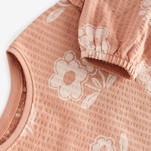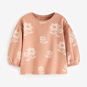 Peach Pink Flower 100% Cotton Long Sleeve Textured Top (3mths-6yrs)