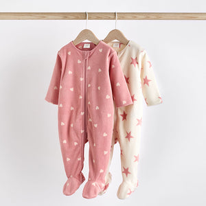 Pink Baby Microfleece Zip Sleepsuits 2 Pack