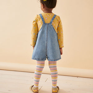 Dungaree 100% Cotton. T-shirt 88% Cotton, 12% Elastane. Tights 73% Cotton, 25% Nylon, 2% Elastane.