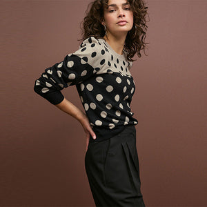 This black and neutral spot crewneck jumper has a lightweight knitted fabric, making it perfect for layering, with a crewneck collar and ribbed hems.
