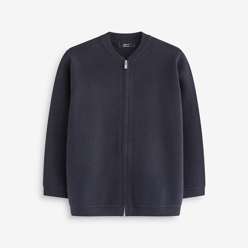 Navy Blue Knitted Zip Through Bomber Cardigan (3-12yrs)