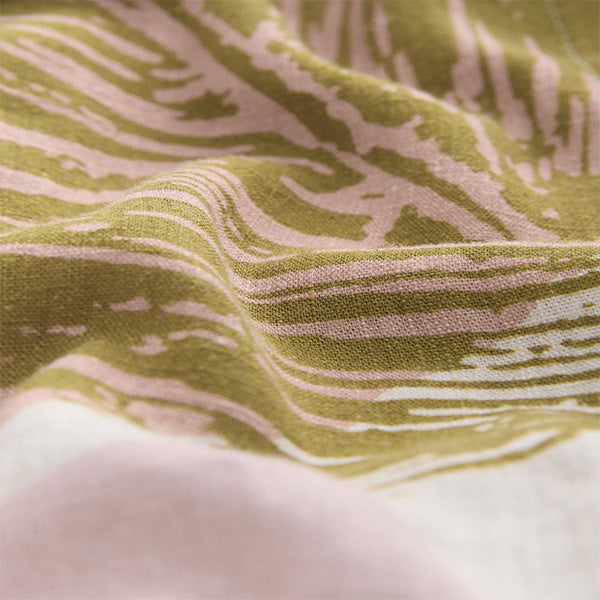 Cream Palm Print Short Sleeve Tie Waist Midi Dress with Linen