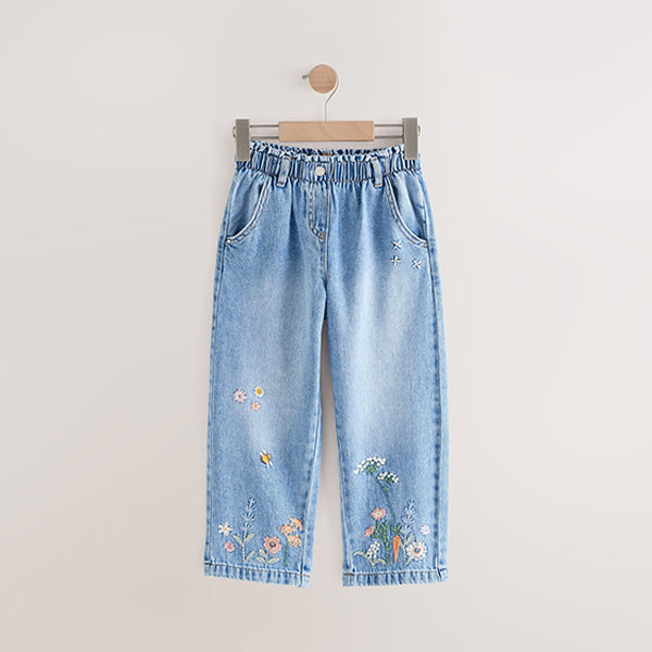 Dial up the denim with our floral print embroidered jeans. Made from pure cotton in a wide leg cut, these elasticated jeans are coated in a pretty floral embroidered design making them perfect for the summer months.