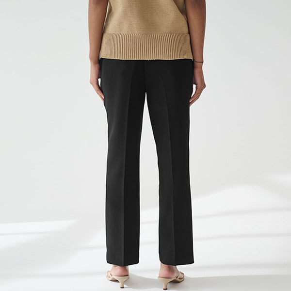 Smart style couldn't be easier than with our black tailored trousers. Designed in a straight leg silhouette, these trousers feature an elasticated back to the waistband for a comfortable all-day fit. Designed with side pockets and a button detail to the waistband, these classic trousers are the perfect workwear staple.