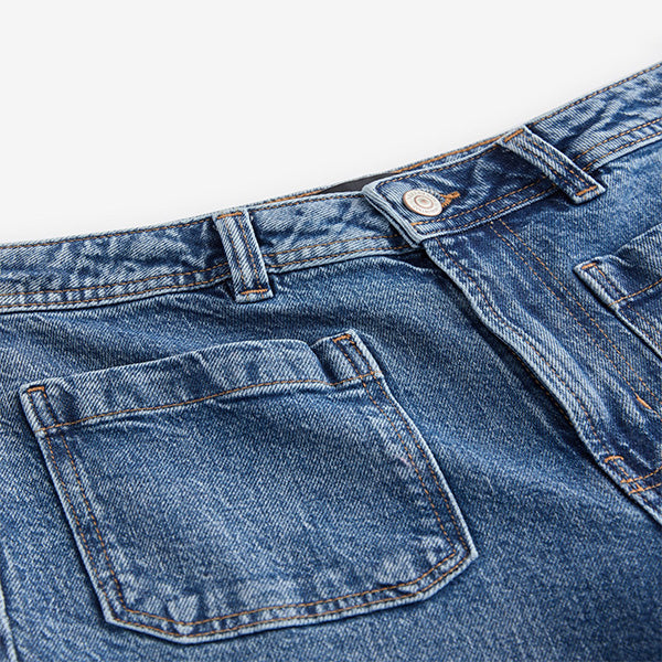 • Load image into Gallery viewer, Dark Blue Patch Pocket Wide Leg Jeans