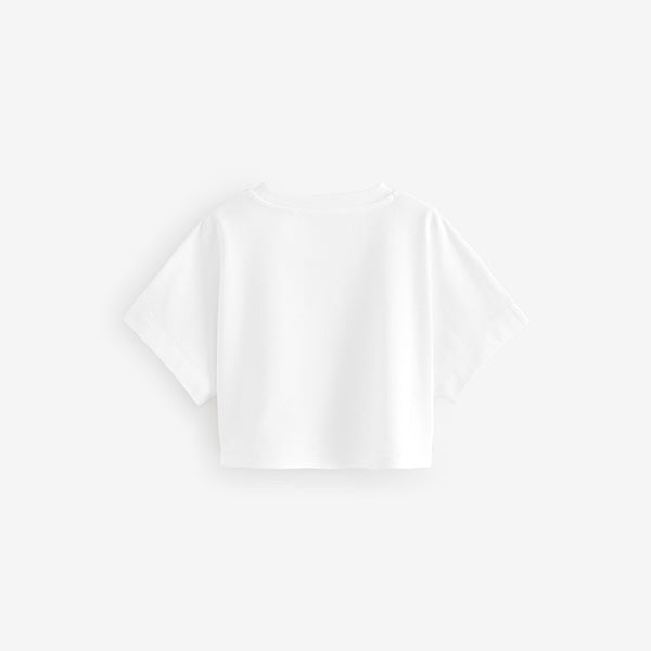 An everyday hero in an on-trend shape, this white pure cotton t-shirt is cut to a boxy cropped fit, made from a heavy weight jersey blend with a crewneck collar.