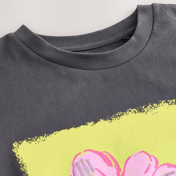 This pretty T-shirt has a comfortable oversized fit and a pure cotton base, featuring a print with sparkling sequin detailing, finished with a crew neck collar.