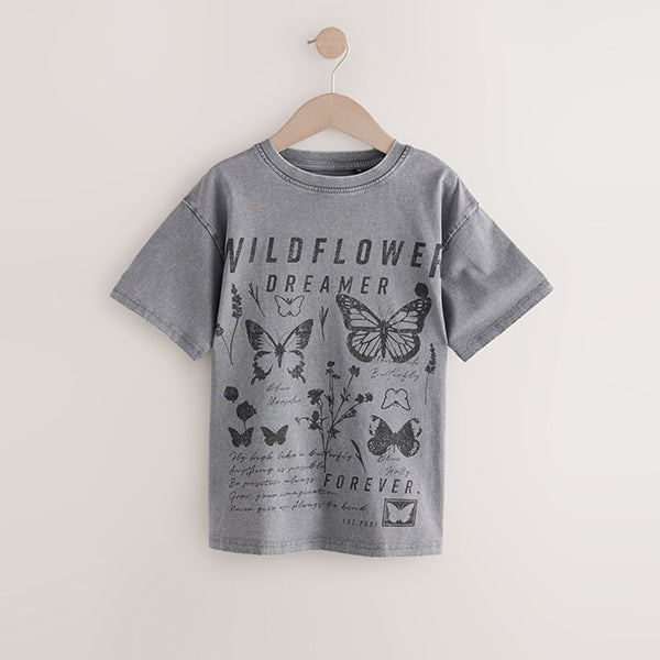 Charcoal Grey Oversized Graphic Print T-Shirt (3-12yrs)