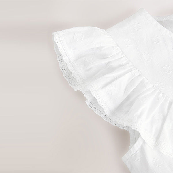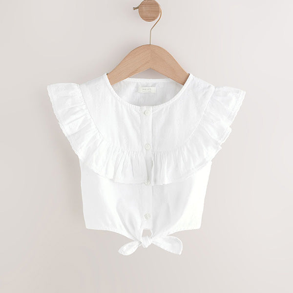 This pretty white blouse top is made from pure cotton for a breathable and comfortable feel, featuring a button-up fastening, exaggerated ruffle detailing and tie detailing to the hem.