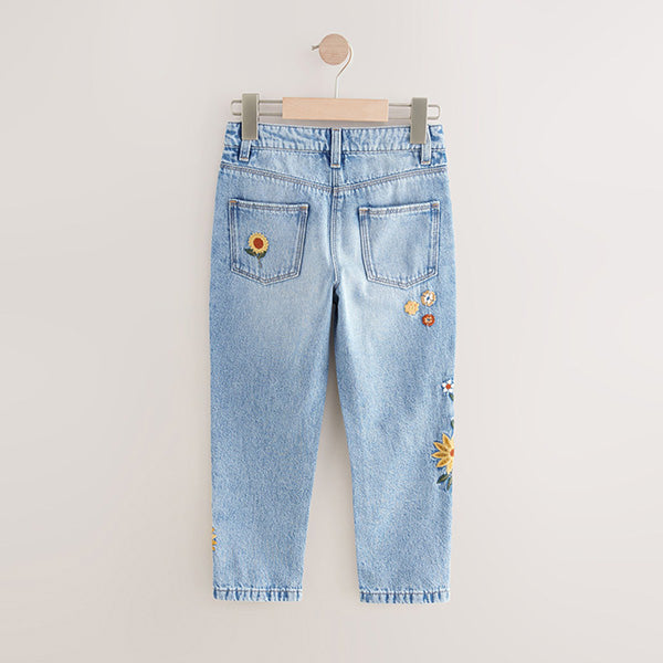 Add a pretty flair to their trouser collection, with these pure-cotton denim Mom jeans, featuring embroidered flower detailing and an inner adjustable waist for a comfortable feel, finished with a button and zip fastening.