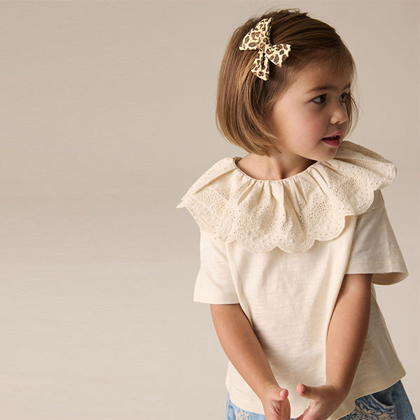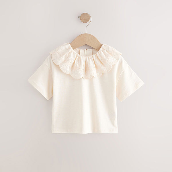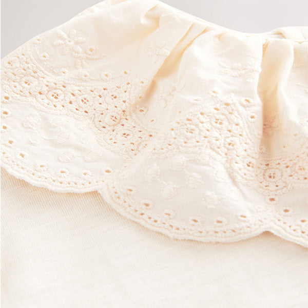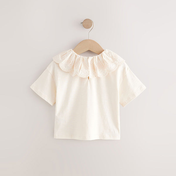 This pretty cream pure-cotton top has a short sleeve design with a delicately detailed broderie collar with a gathered neckline, adding a touch of magic to any outfit.