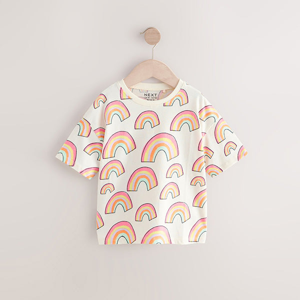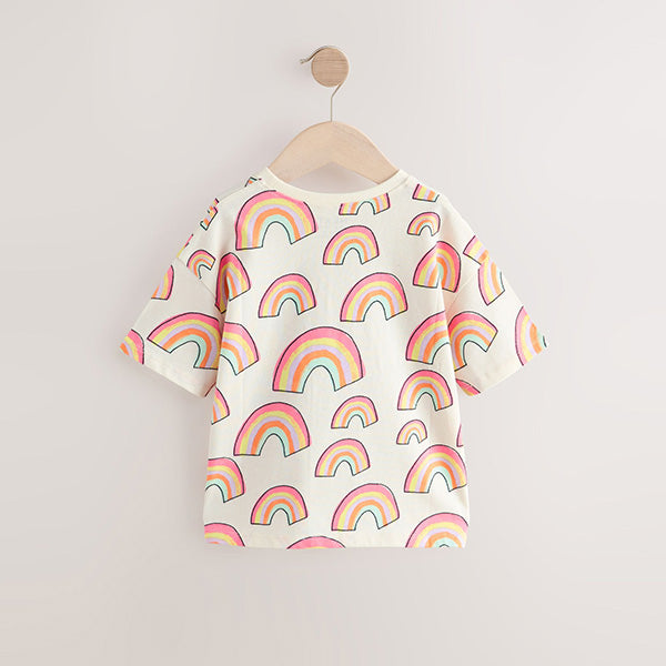 This short sleeve t-shirt is made from pure cotton with a stylish boxy fit, featuring an all-over rainbow print with a cream base, finished with a crewneck collar.