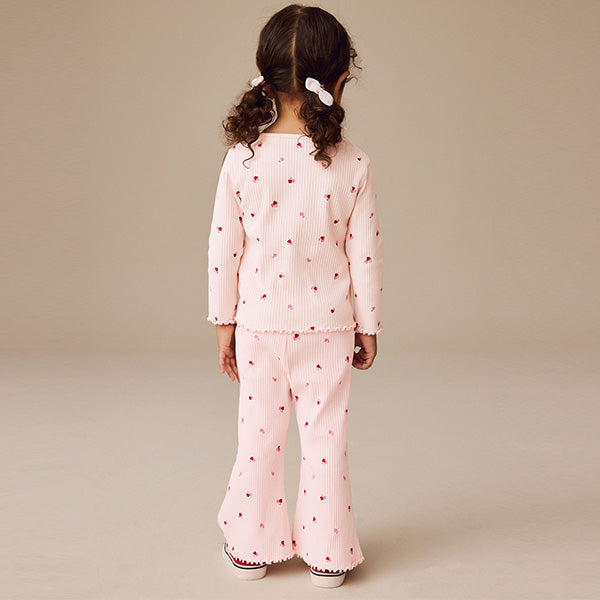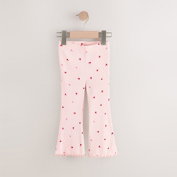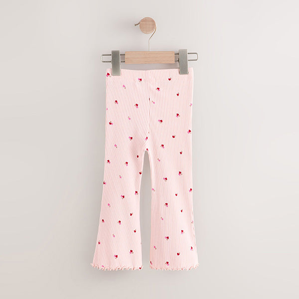 What's not to love about our girl's cherry hearts flare leggings. Made from pure cotton with added stretch, these flared leggings are made with a ribbed texture and complete with a lettuce hem trim for added fun.