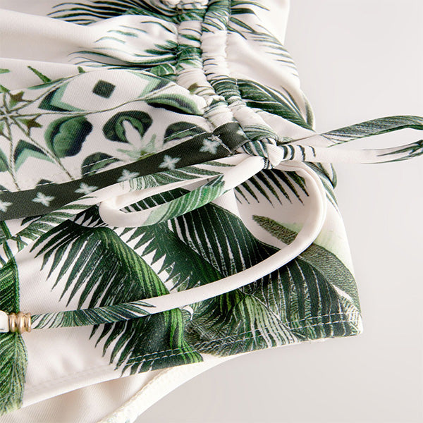 Create a beautiful silhouette with this flattering plunge swimsuit. Available in a range of colourways and prints, it features wire-free cups with light padding and ruched side detail.