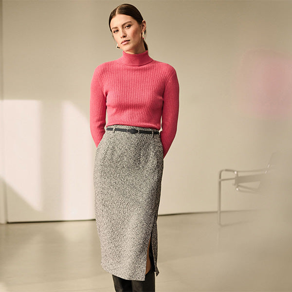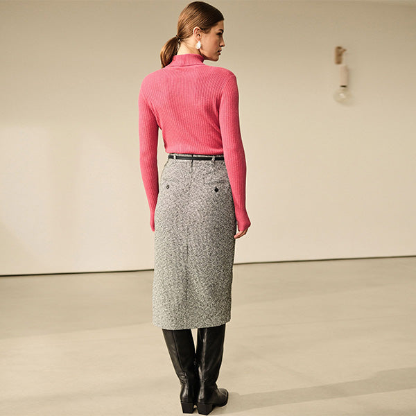 In an elevated boucle textured fabric, this stylish pencil skirt is perfect for the office, featuring an all-over monochrome pattern with a split hem, a midi length and a detachable belt.