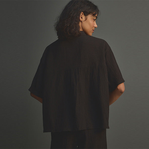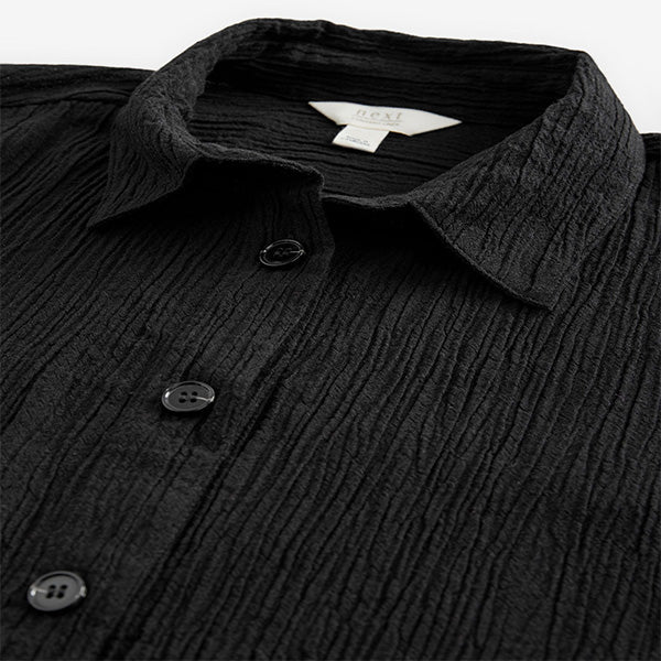 Black Short Sleeve Textured Co-ord Shirt With Linen