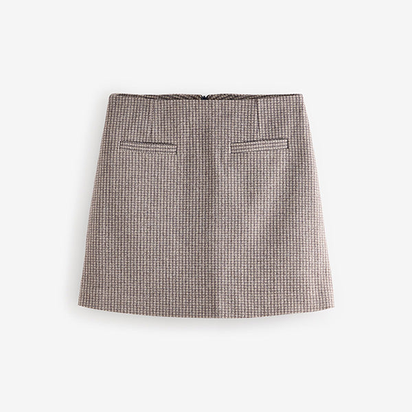 This mini-size skirt is perfect for the office or a night out, featuring a brushed fabric for an elevated look in a smart houndstooth pattern, finished with functional welt pockets and a zip fastening to the back.