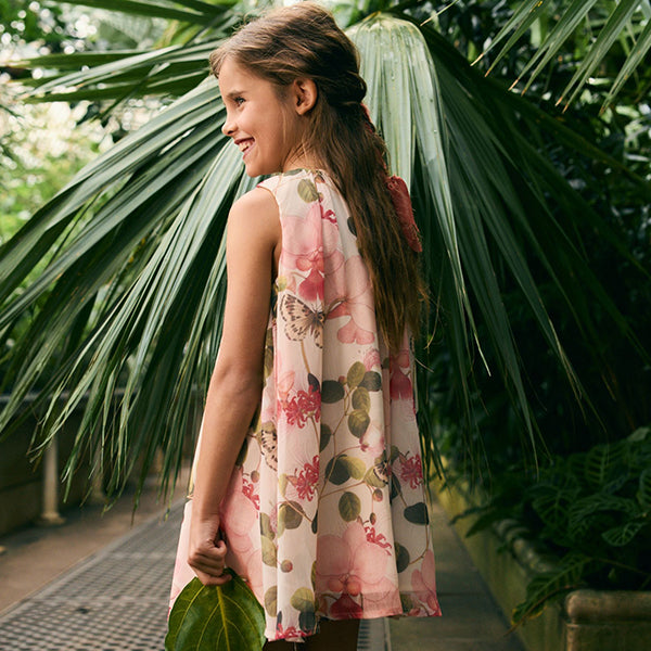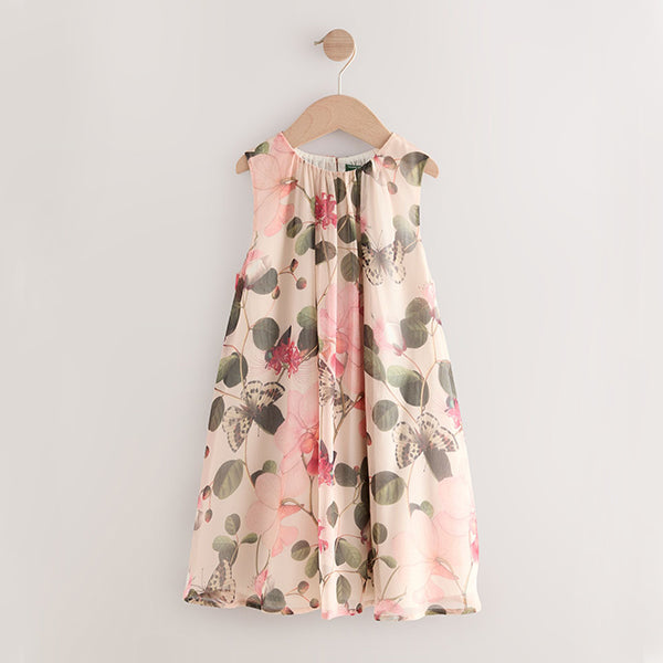 Perfect for twirling with a pretty chiffon fabric and a button fastening to the back, this gorgeous dress is a fantastic option for weddings and other special occasions, featuring a delicate all-over floral print that's inspired by the Royal Botanical Gardens.