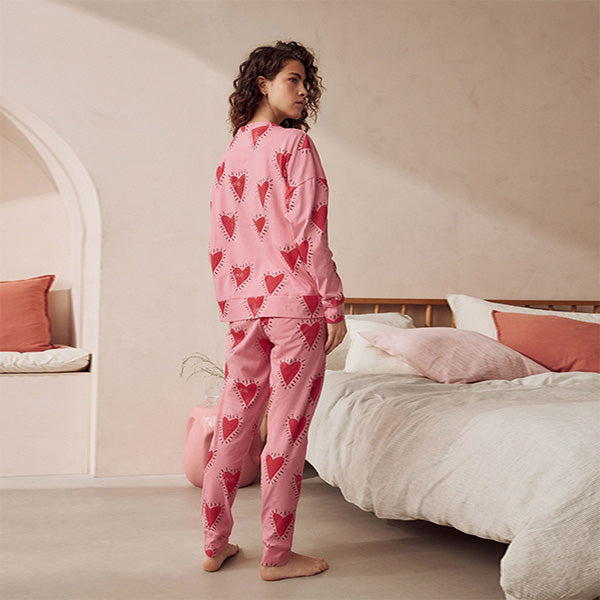 This 2-piece pyjama set is made from pure cotton, in a relaxed shape with an all-over leopard star print across a long sleeve top and full-length bottoms with an elasticated waistband, perfect for gifting or upgrading your go-to pyjamas.