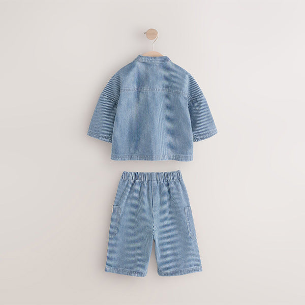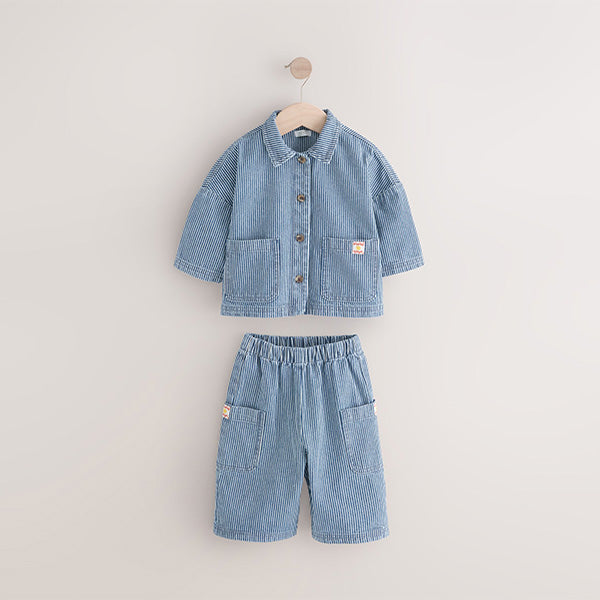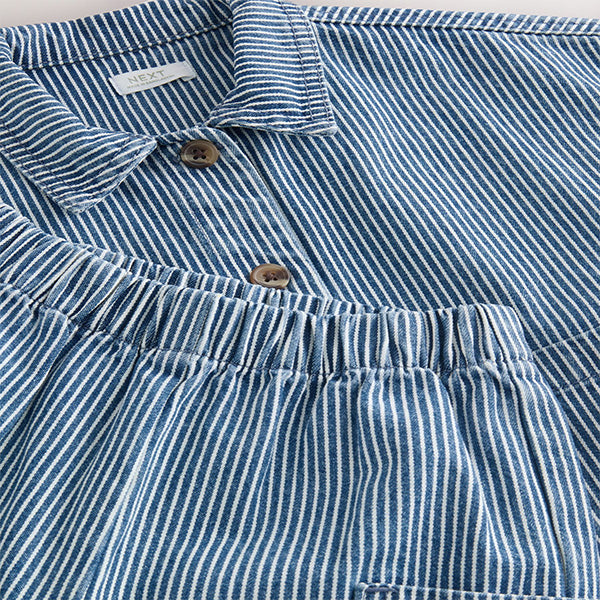 Add some stripe style to your little one's wardrobe with our shirt and trousers set. Made from pure cotton, this cute co-ord features a button-down shirt and matching elasticted trousers with patch pockets.