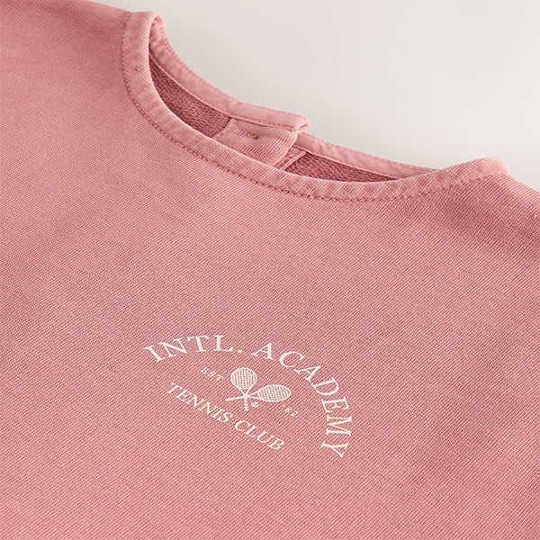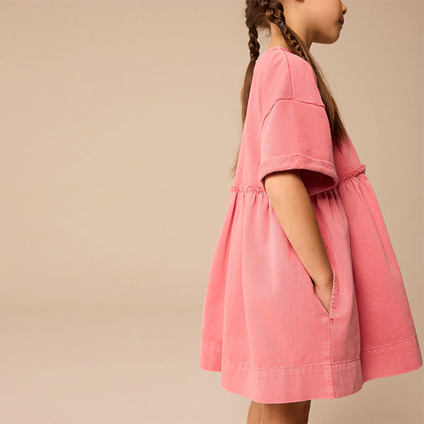 Effortless style and comfort combine in this girl's t-shirt dress. Designed with a mix of jersey and twill fabric with sweet Varsity detail and pockets at side seams. Perfect for everyday wear, it's soft, easy to wear, and ready for any adventure.