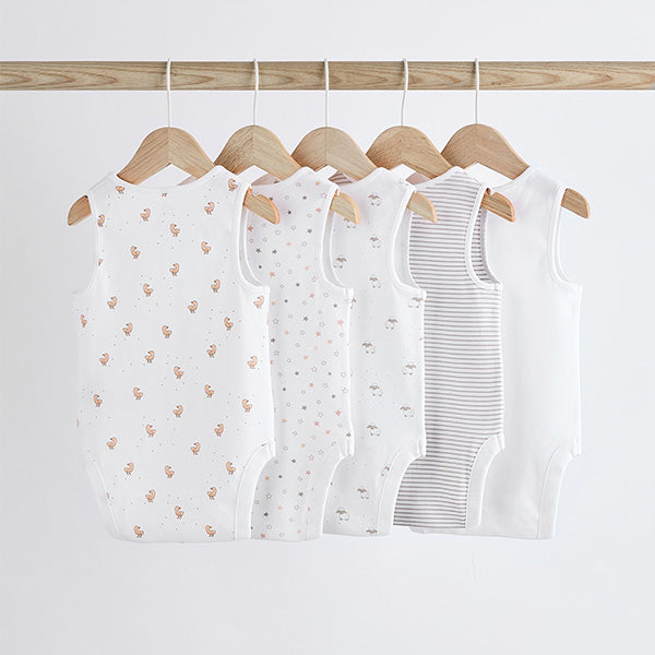 Stock-up on their everyday staples with this 5-pack of bodysuits, made from pure cotton in printed and plain styles with an envelope neck opening, a popper fastening and printed back labels to avoid irritation.