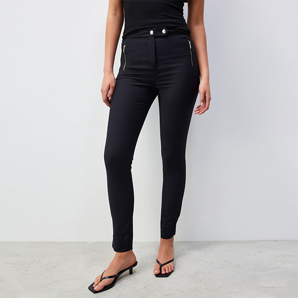A firm fashion favourite, our zip detail skinny trousers are ideal for dressing up or down. Made from stretch fabric in a skinny leg shape with zip pocket detail and elastic back waistband.