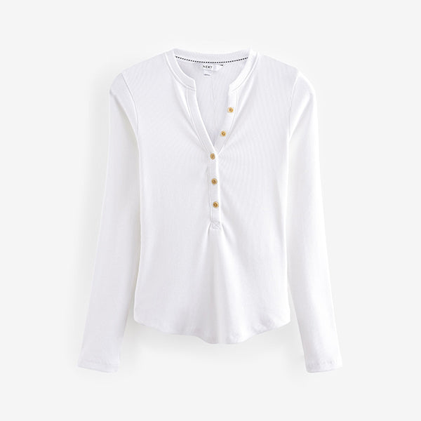 This classic top is made from a cotton-rich fabric with a slight stretch and a slim fit, boasting a ribbed all-over design with a button detail Henley collar, finished with stitched detailing to the back and long sleeves.