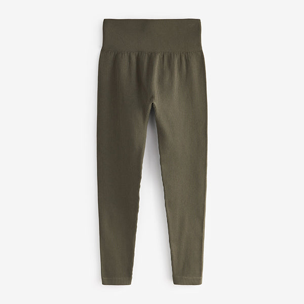 Perfect for days on the go, our buttery soft and stretchy khaki green leggings have got you covered. Made from a nylon blend and with ribbed seamless finish, these stylish skinny fit high-waisted leggings are designed to move with you while offering support and they finish neatly at the ankle. Style with our matching tee's, trainers and a blazer for the ultimate athleisure image.