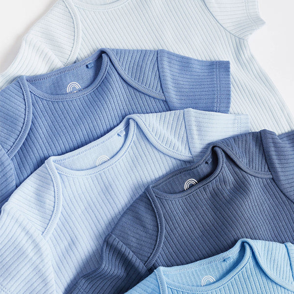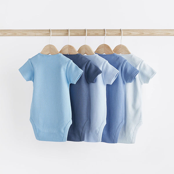 This 5-pack of pure-cotton bodysuits feature bold colours that are ready for spring and summer, with a super soft feel and ribbed detailing, finished with envelope neck openings, a popper bottom fastening and short sleeves.