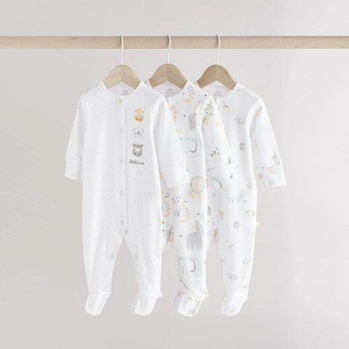 White Animal Print 100% Cotton Baby Sleepsuits 3 Pack