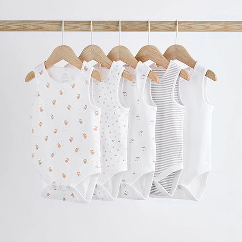 White Delicate Animal Baby Vest Bodysuits 5 Pack