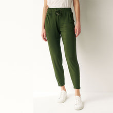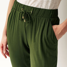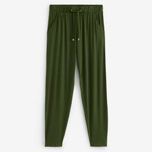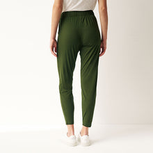 Our green jersey joggers are a casual and comfortable wardrobe hero. Made from breathable LENZING™ ECOVERO™ material with added stretch, you'll love the easy pull-on style and the tapered leg shape for a touch of modern chic. Pair with your favourite T-Shirt for easy lounging or a quick coffee run.