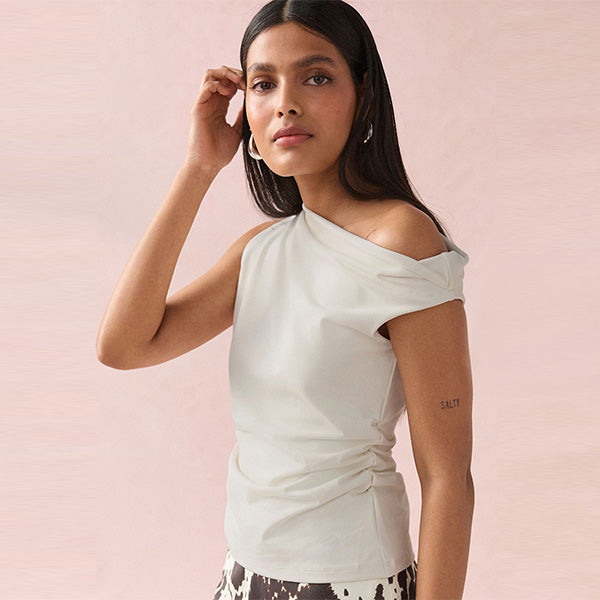 Exude effortless elegance in this stunning top, perfect for a chic day-to-night transition. The luxurious fabric drapes beautifully into a unique, asymmetric cowl neckline and subtle ruching on the side. The sleeveless design makes this a versatile piece for work or going out.