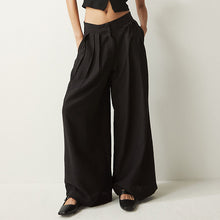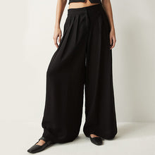 • Load image into Gallery viewer, Black Textured Wide Leg Trousers