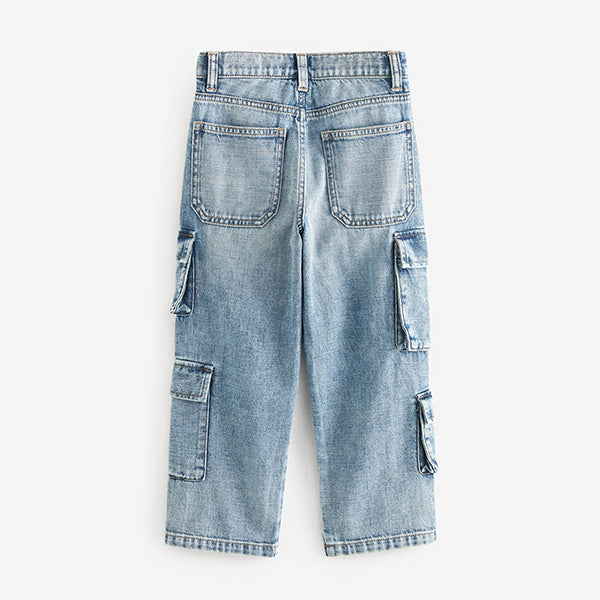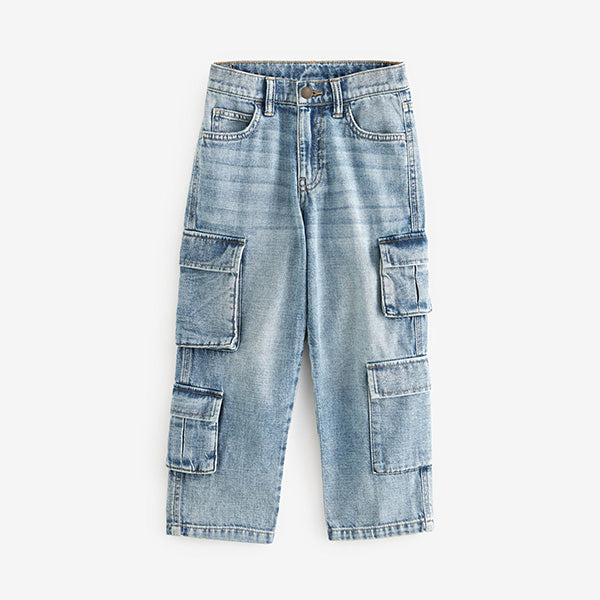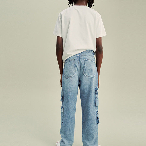 Bleach Wash 100% Cotton Denim Multipocket Cargo Jeans